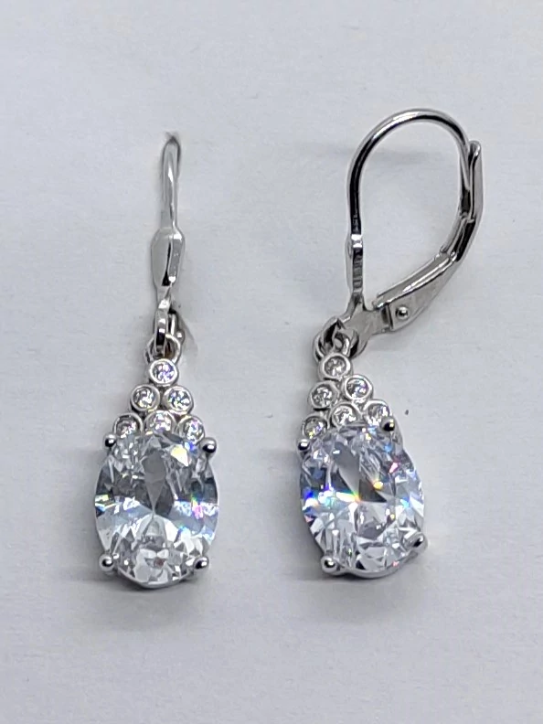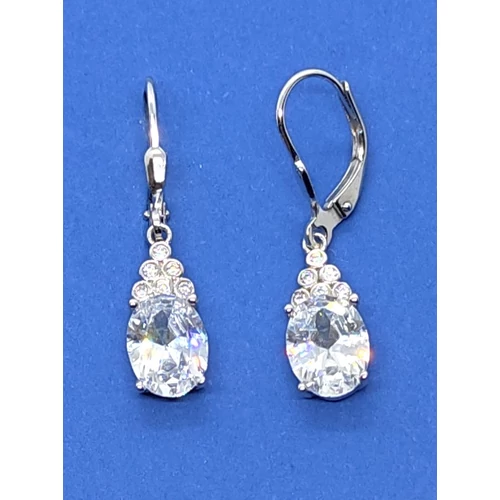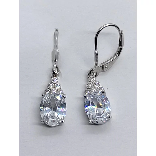 4 karomba foglalt ovális fehér cirkon köves felül buttonos foglalatú fehér cirkon kővel díszített ezüst lógós fülbevaló