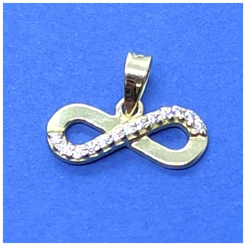 | A mindig klasszikus végtelen jel, arany medál, melyet féle arányban cirkon kővel díszítettek | |