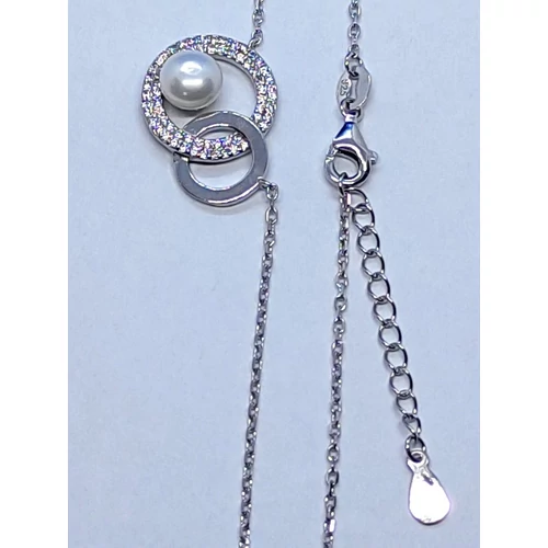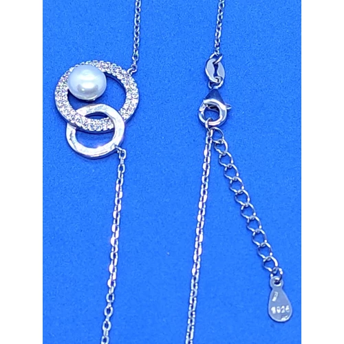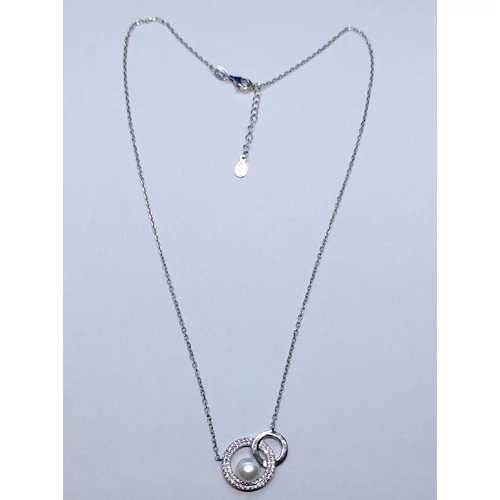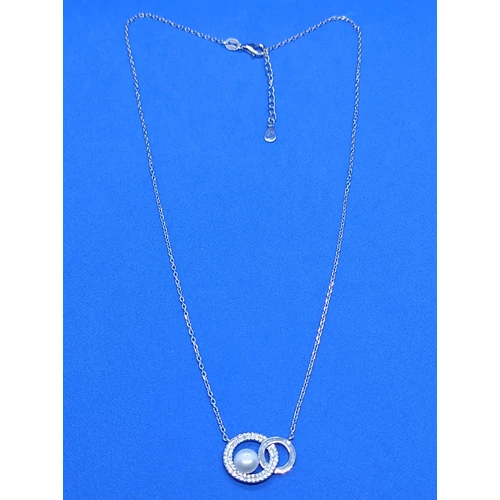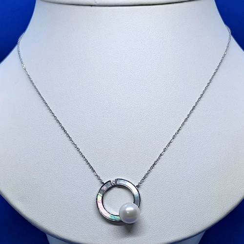 | Anker lánc közé beépített karika zöld, és fehér gyöngyházzal bélelt, 8 mm-es édesvizi gyönggyel díszített ezüst medál | |