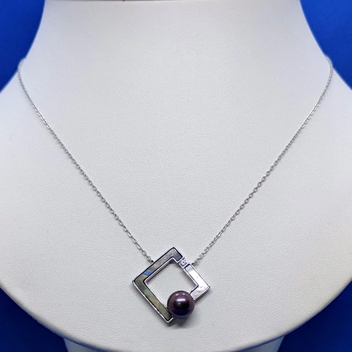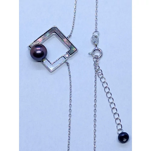 | Anker lánc közé beépített zöld, és fehér gyöngyházzal bélelt, 7 mm-es édesvizi tahiti gyönggyel díszített ezüst medál | |