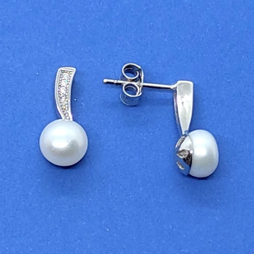 Apró pici cirkon kővel kirakott ezüst száron 6 mm-es tenyésztett gyönggyel díszített ezüst srófos fülbevaló