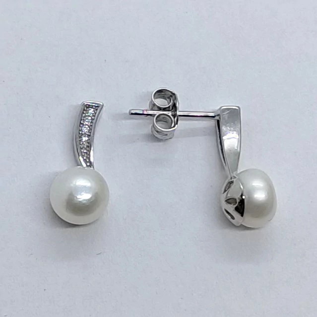 | Apró pici cirkon kővel kirakott ezüst száron 6 mm-es tenyésztett gyönggyel díszített ezüst srófos fülbevaló | |