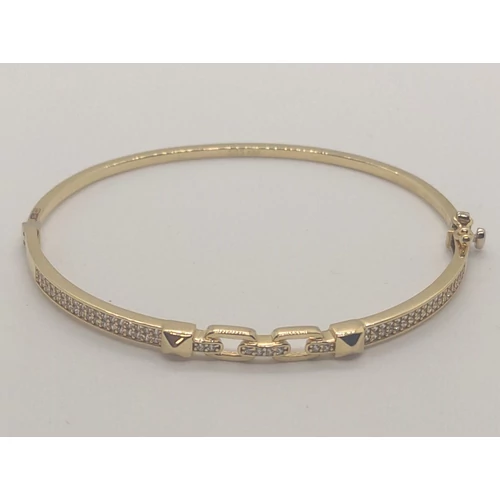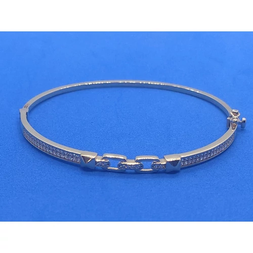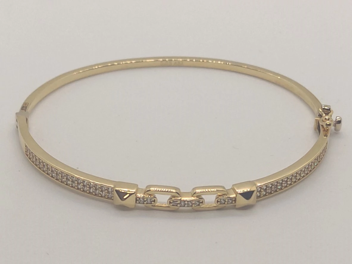 Dupla sorkővel és két téglalap alakú mintával díszített, zsanérosan nyíló és biztonsági zárral ellátott egyszerű elegáns arany karkötő