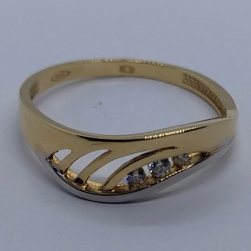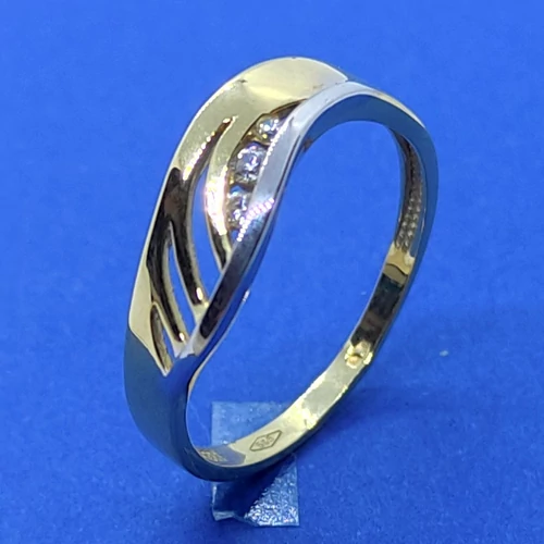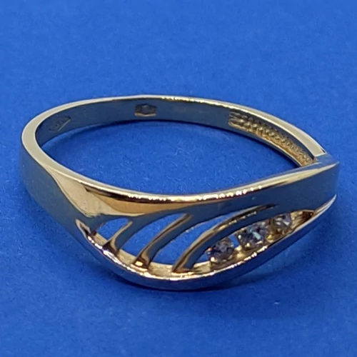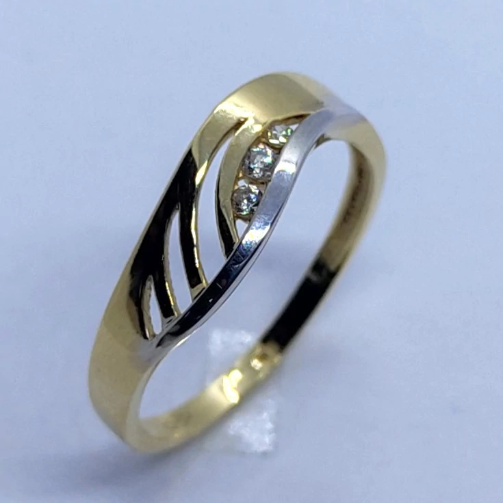 | Elegánsan egyszerű, sima vonalú, ródiummal, és cirkon kővel díszített rácsos arany gyűrű | |