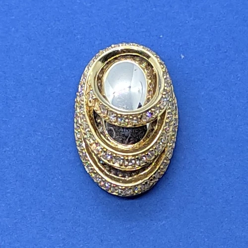 Extra kivitelezésű, ovális arany medál, magas fényű betéttel, amelyet cirkon sorkővel kereteztek