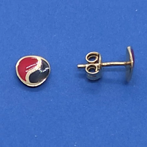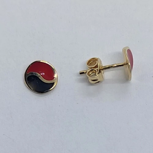 | Fekete-piros jing-jang zománcos kissé homorú kerek lapos arany srófos fülbevaló | |
