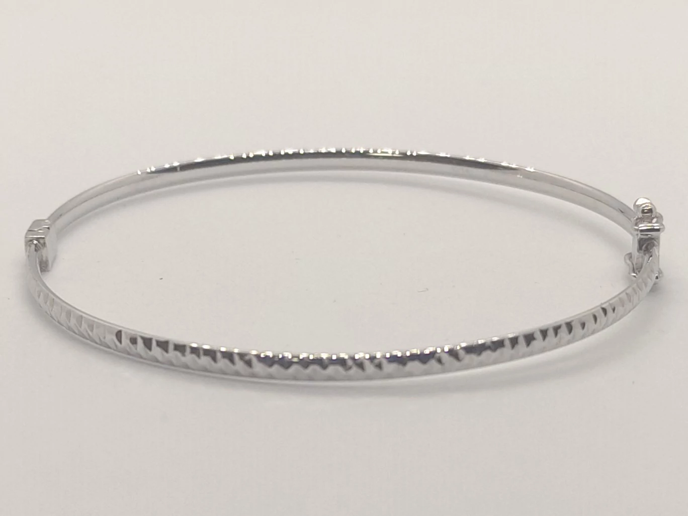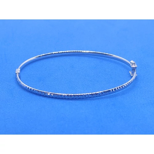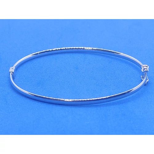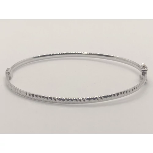 | Fele részben csiszolt, csillogó hatású fehérarany karkötő, melyet zsanérral, és dupla biztonsági zárral láttak el | |