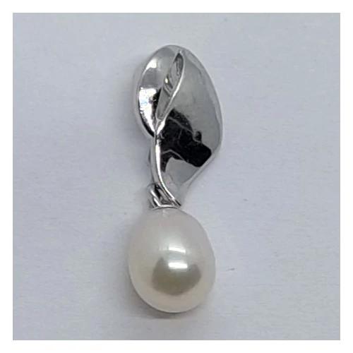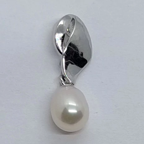 Felül levél mintájú, magas fényű szárrésszel készült, alúl 7 mm-es édesvizi tenyésztett gyöngyös ezüst medál