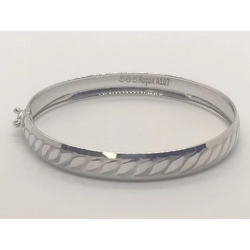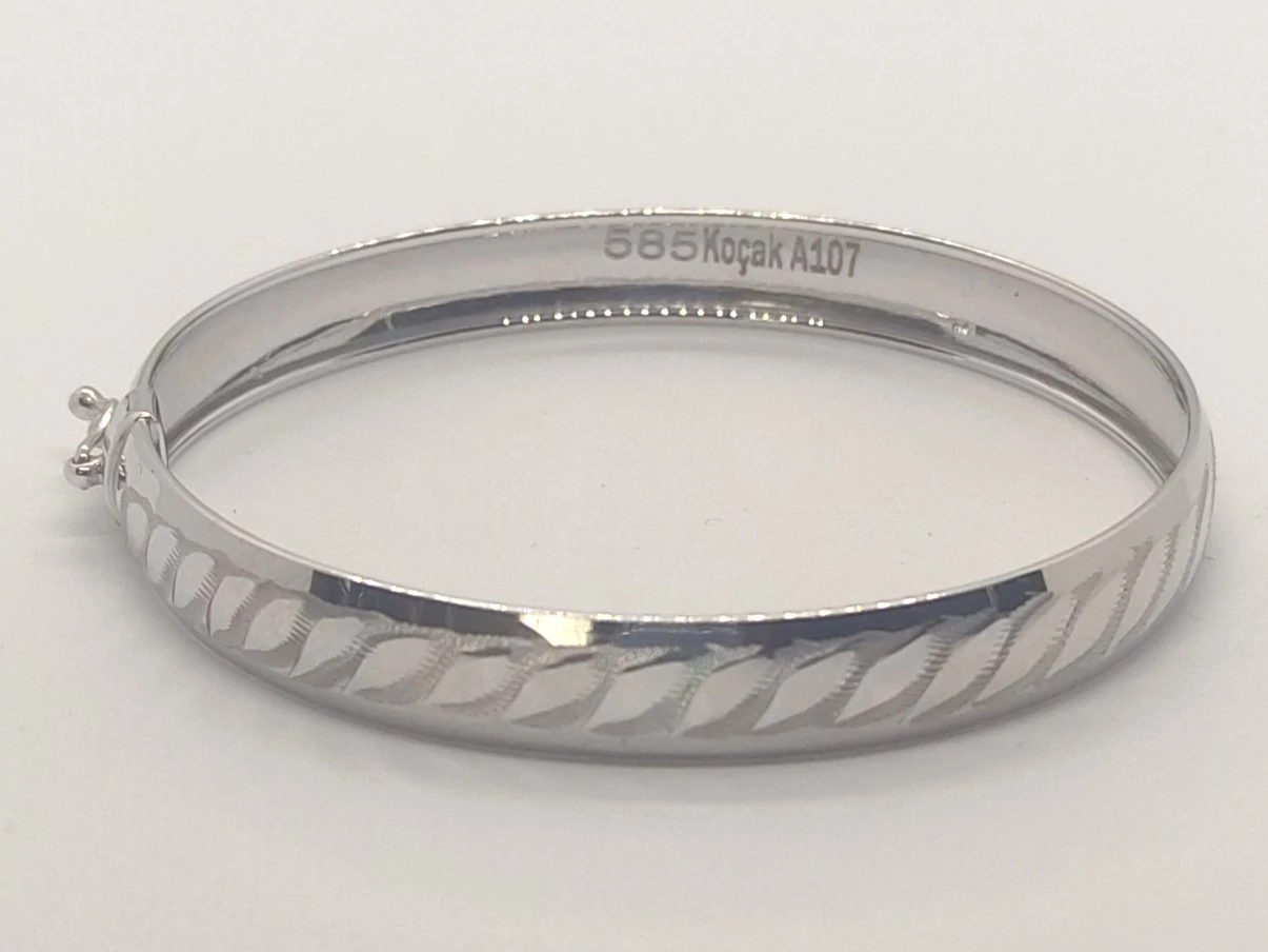 Klasszikus sál csiszolású, magasfényű széles, biztonsági zárral készült fehérarany kar reif