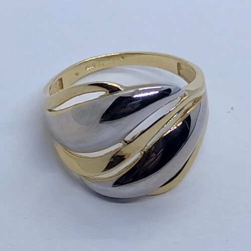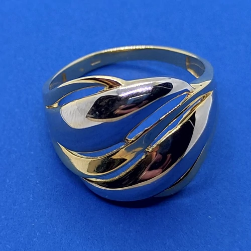 | Magas fényű látványos domború, széles fejrészű hullám vonlas arany gyűrű | |