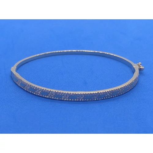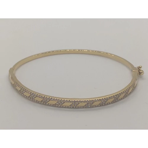 Mintájában egyszerű cirkon kővel díszített, zsanérosan nyíló és biztonsági zárral ellátott egyszerű elegáns arany karkötő