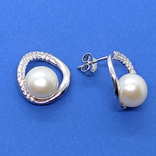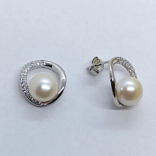 | Nagy karika formájú apró cirkon kövekkel díszített középen 8 mm-es édesvizi tenyésztett gyyönggyel készült ezüst srófos fülbevaló | |