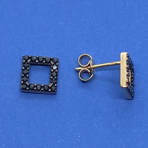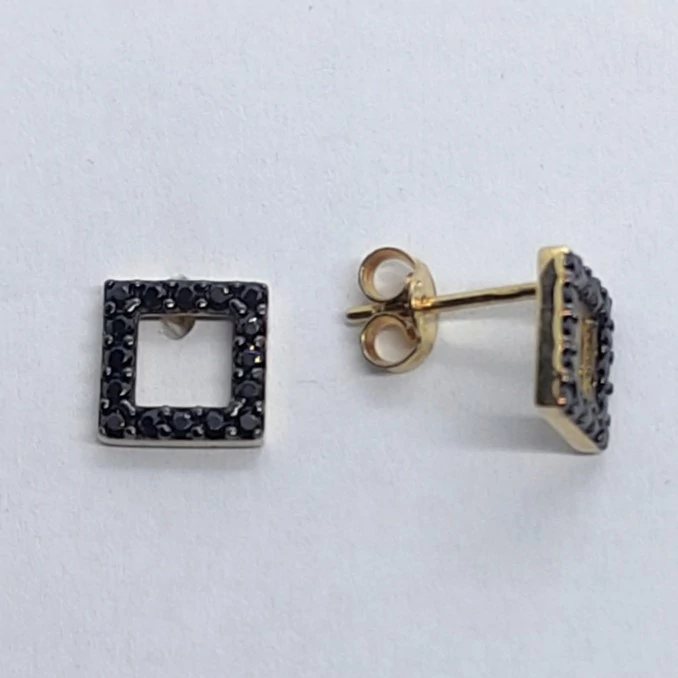 | Négyzet alakú ablak formájú fekete csillogó cirkon sorkővel díszített arany srófos fülbevaló | |