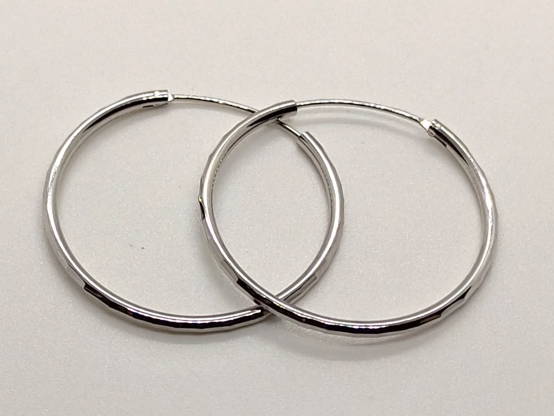 | 2 mm széles csőből készült csiszolt mintájú ezüst karika fülbevaló | |