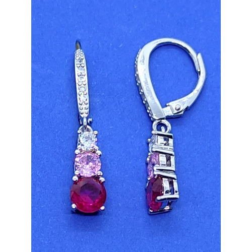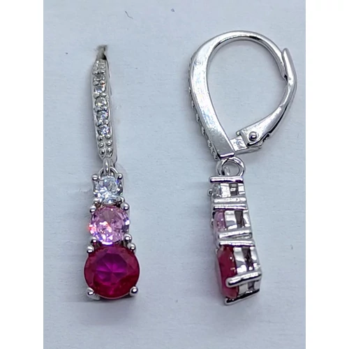 4 karomba foglalt fehér, rózsaszín és rubinszínű cirkon kővel díszített ezüst lógós fülbevaló