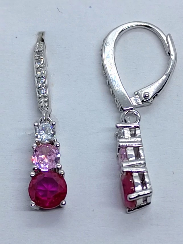 | 4 karomba foglalt fehér, rózsaszín és rubinszínű cirkon kővel díszített ezüst lógós fülbevaló | |