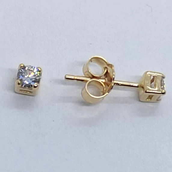 4 karomba foglalt kerek gyémánt csiszolású cirkon köves, csillosó arany srófos fülbevaló | |