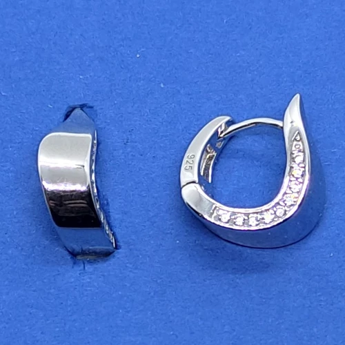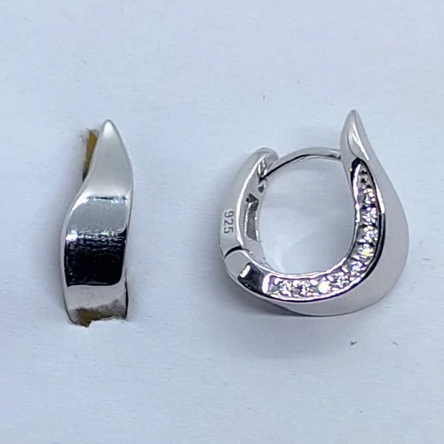 | 5 mm lefele szélesedő, hullám vonalú külső peremén cirkon kövekkel díszített ezüst karika fülbevaló | |