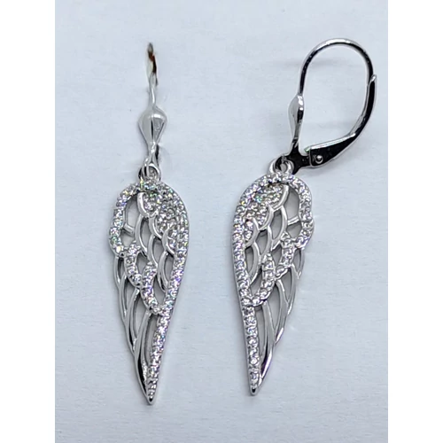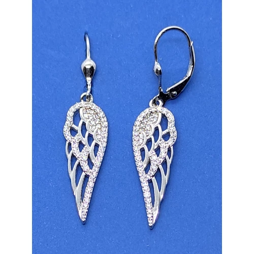 Angyalszárny formájú, cirkon kövel díszített áttört mintás ezüst lógós fülbevaló