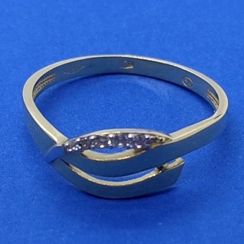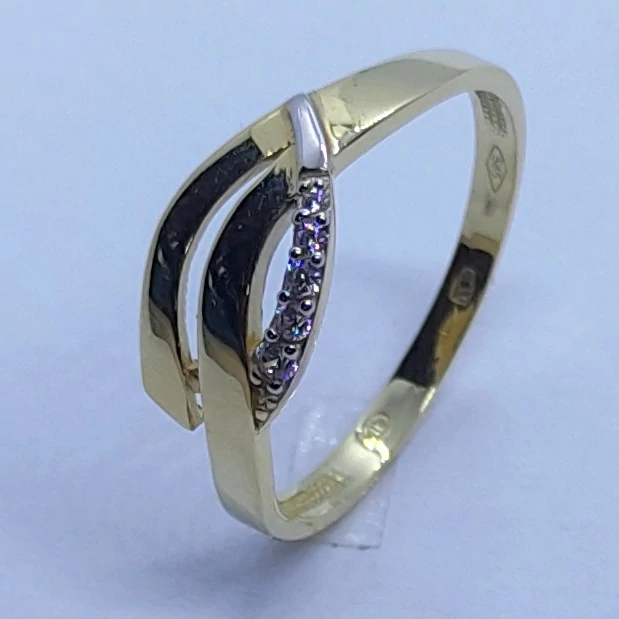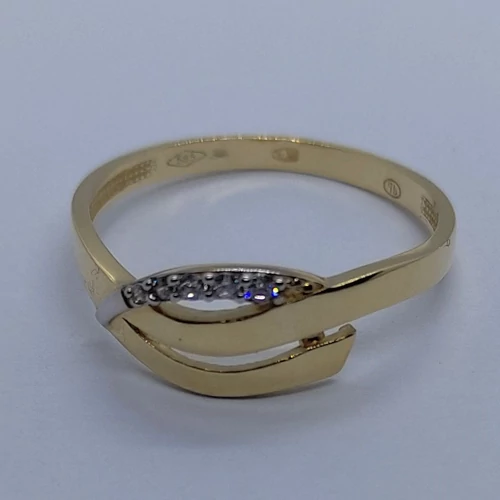 Asszimetrikusan hullám vonalú, egyik részén cirkon kövekkel díszített arany gyűrű | |