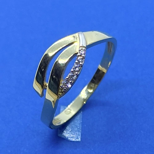 Asszimetrikusan hullám vonalú, egyik részén cirkon kövekkel díszített arany gyűrű
