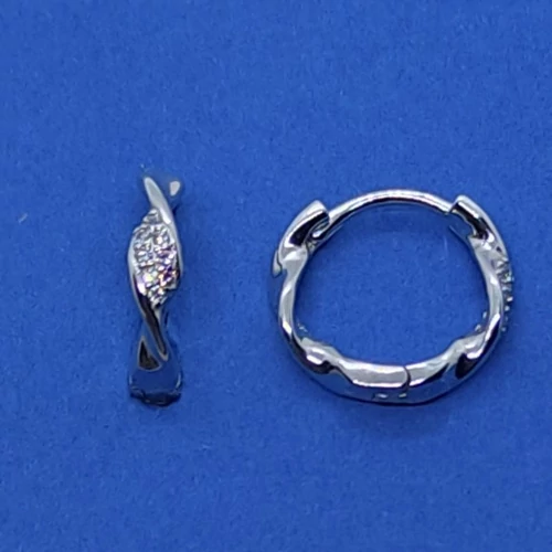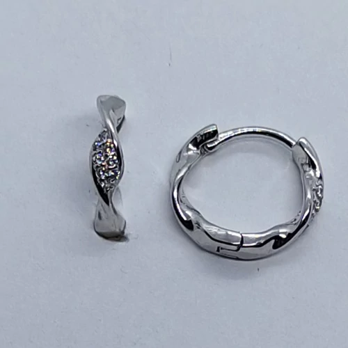 | Csavart mintás elején cirkon kővel díszített ezüst karika fülbevaló | |