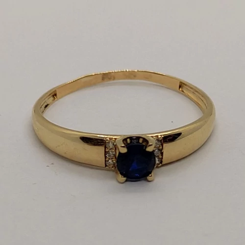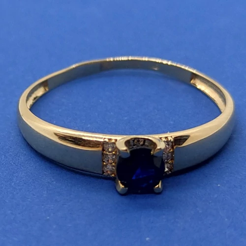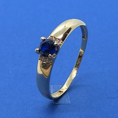 | Egyszerűen elegáns középen 4 karomba foglalt sötétkék cirkon köves arany gyűrű | |