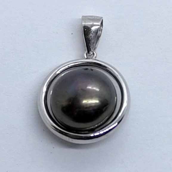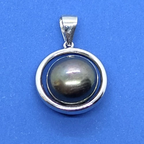 | Ezüst sima karikában 8 mm-es tahiti gyönggyel készített ezüst medál | |