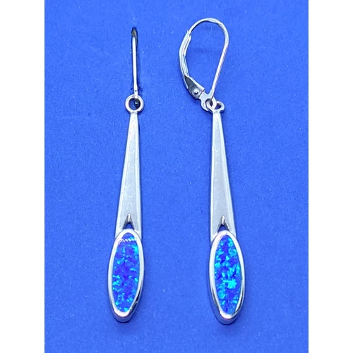 Hosszan lógó kék opál kővel díszített ezüst fülbevaló