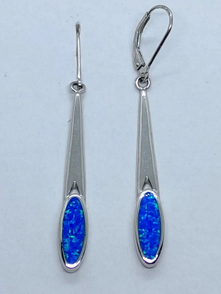 | Hosszan lógó kék opál kővel díszített ezüst lógós fülbevaló | |
