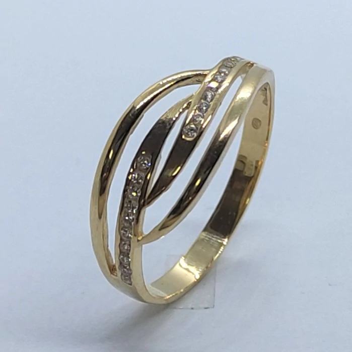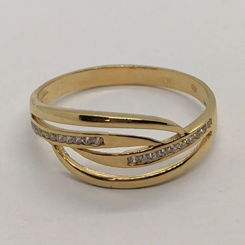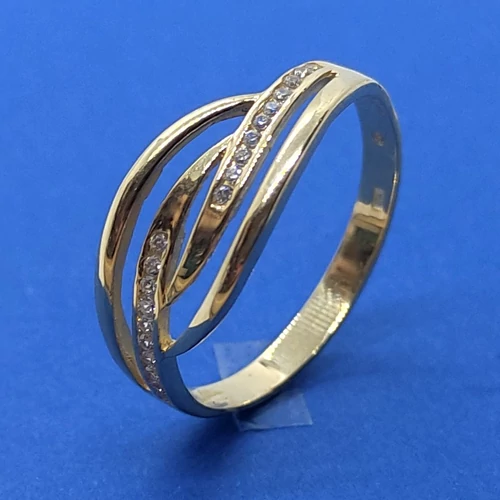 | Hullám vonalas fehér cirkon köveses arany gyűrű | |