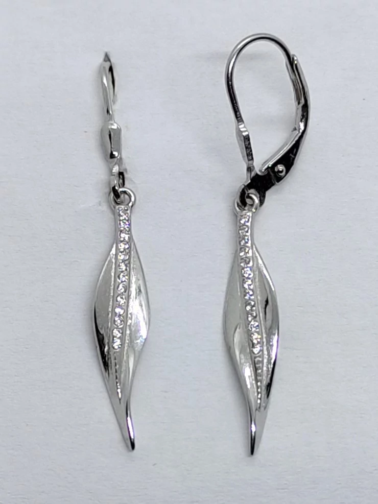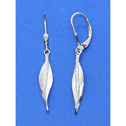 | Jégcsapra emlékeztető, hosszában cirkon sorköves kissé csavart kecses ezüst lógós fülbevaló | |