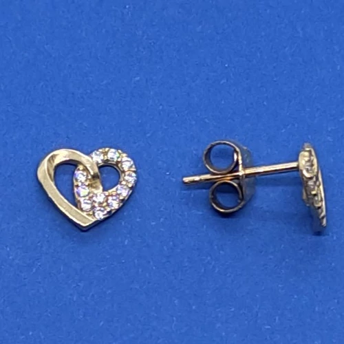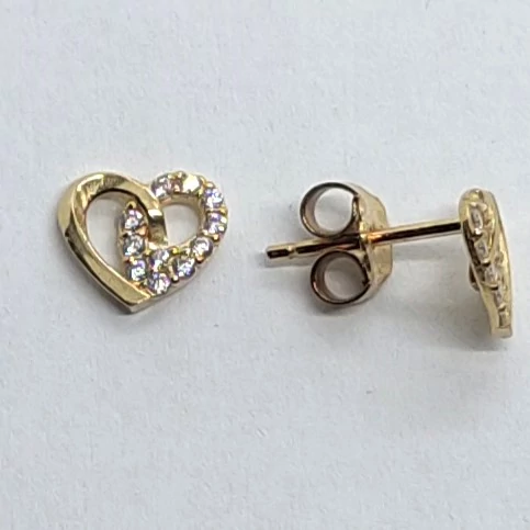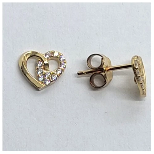 Kissé aszimmetrikus formájú, fele részben cirkon kővel díszített szív alakú arany srófos fülbevaló | |