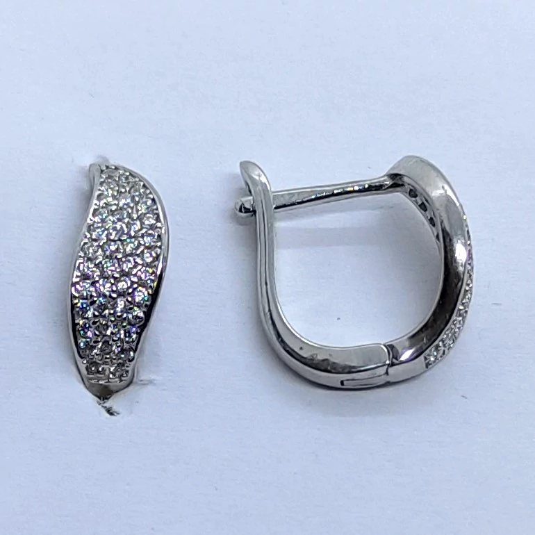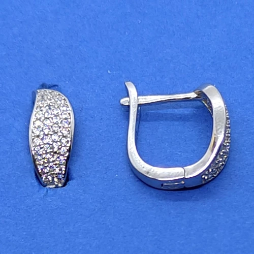 | Kissé széles hullám vonalú, apró cirkon köves betéttel díszített ezüst fülbevaló | |