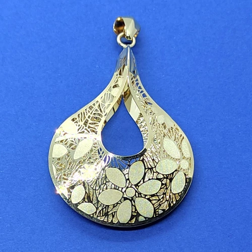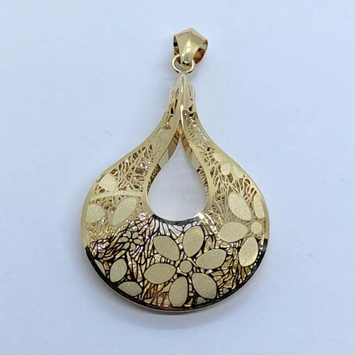| Kövér csepp alakú, különleges virág mintákkal díszített 3D-s arany medál | |