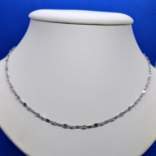 | Magas fényű csiga alakú szemekből szőtt ezüst lánc | |