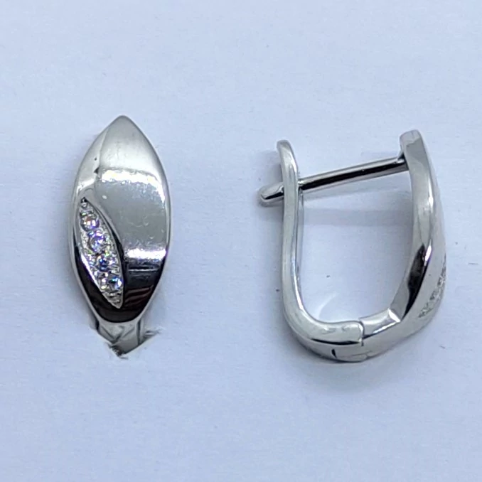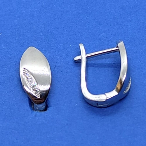 | Magas fényű, sima lavél formájú apró cirlon kövekkel díszített ezüst fülbevaló | |