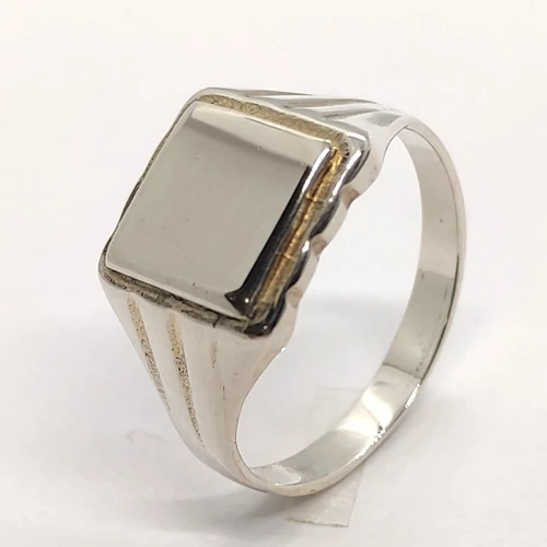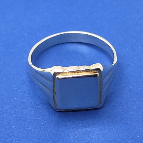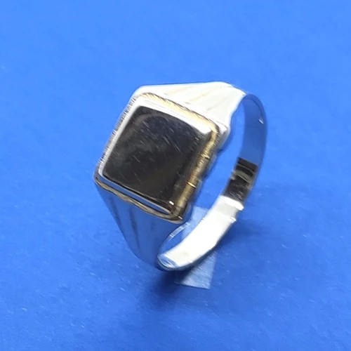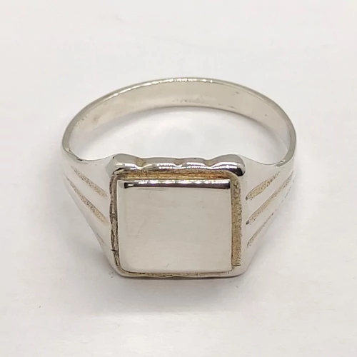 | Négyzet fejrészű, két oldalon 3-3 véséssel díszített ezüst férfi gyűrű | |