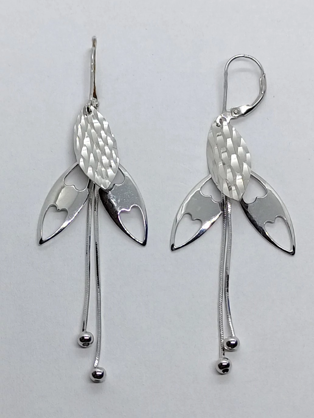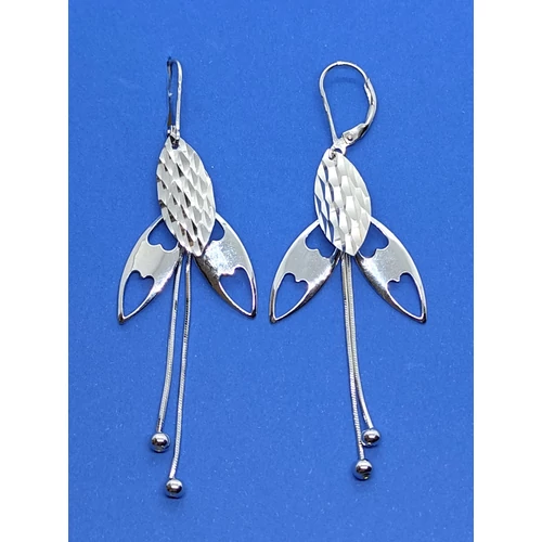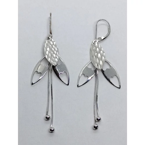 | Pillangóra emlékeztető, csiszolással ids díszített láncos, lógós ezüst fülbevaló | |