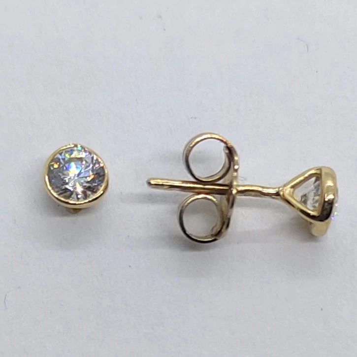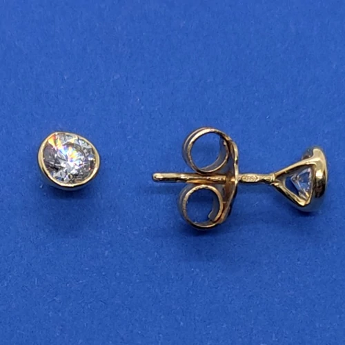 Sima kerek foglalatba foglalt kerek gyémánt csiszolású cirkon köves, csillosó arany srófos fülbevaló | |