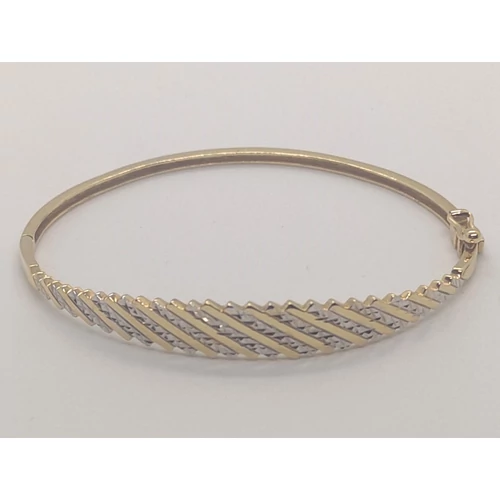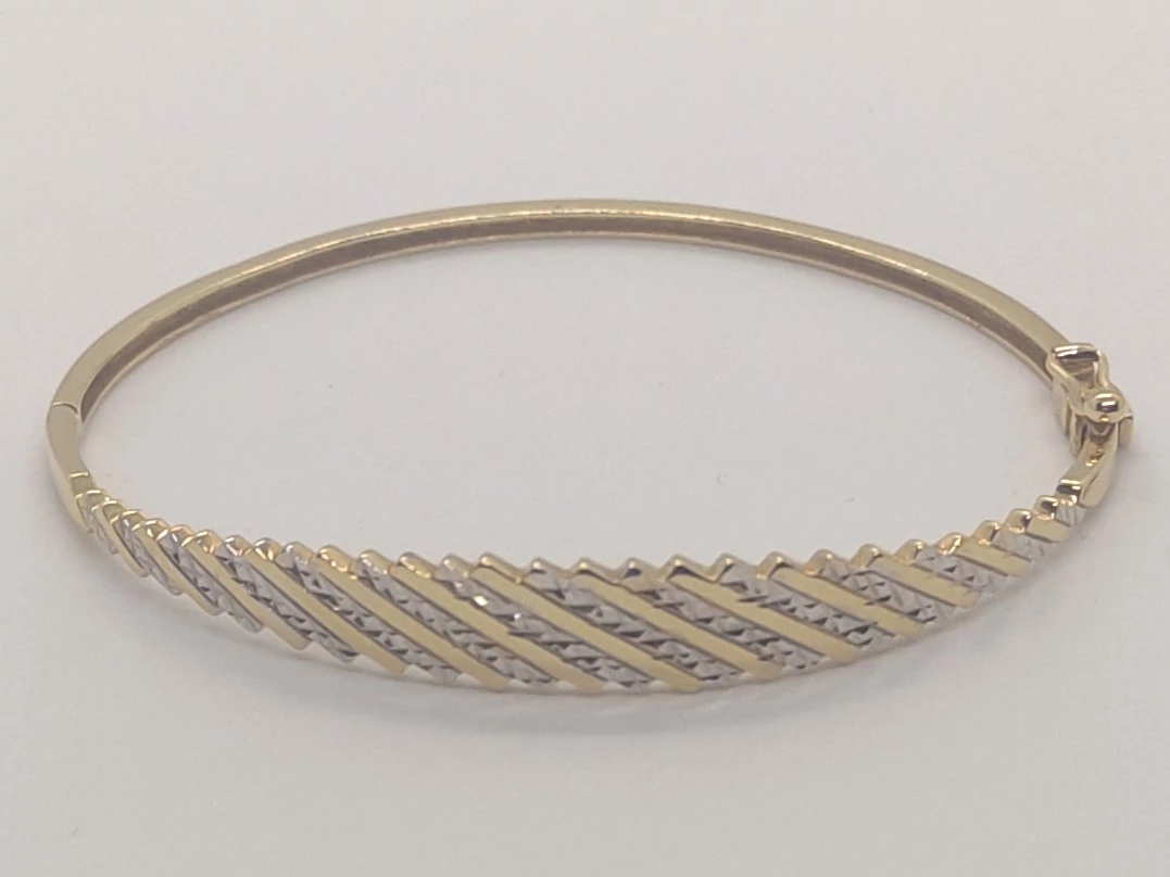 Sréen gyémánt csiszolással, és ródiummal díszített csillogó, zsanéron nyíló arany karkötő