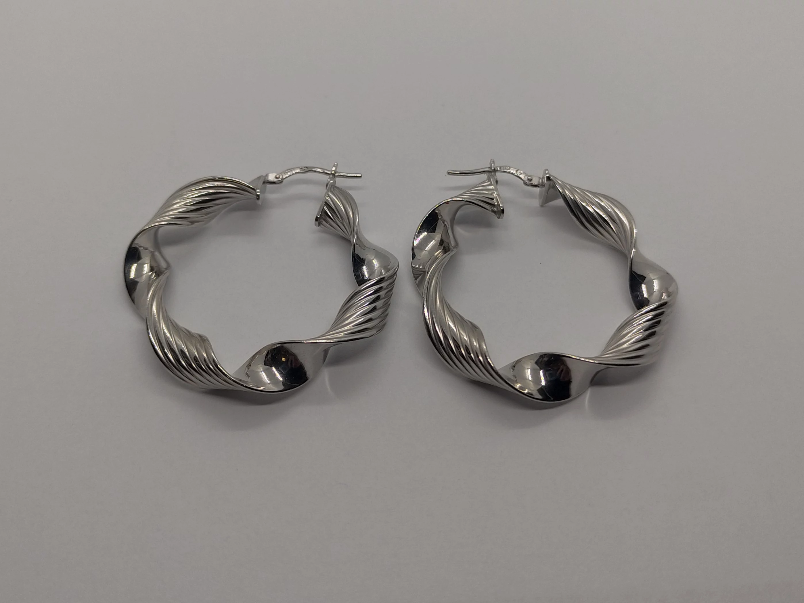 | Széles hullámos sima ezüst karika fülbevaló | |