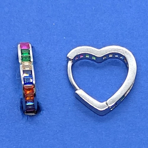 | Szív formályú szines cirkon kővel bélelt ezüst karika fülbevaló | |