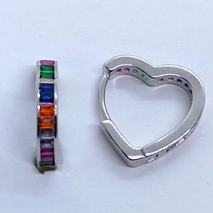 Szív formályú szines cirkon kővel bélelt ezüst karika fülbevaló