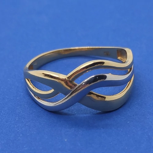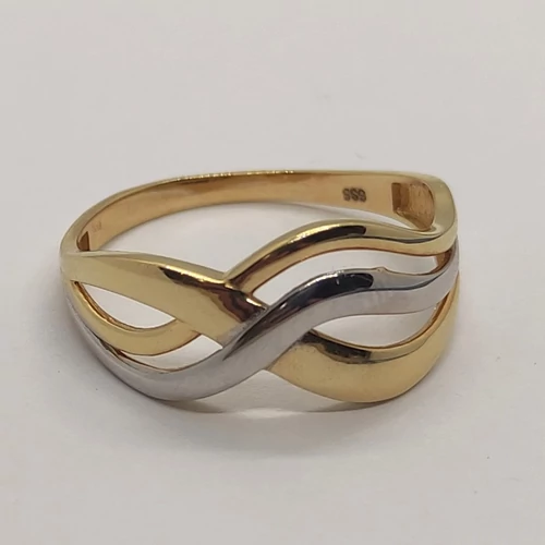 Végtelen jelre emlékezetető fejrészű, bicolor kő nélküli arany gyűrű
