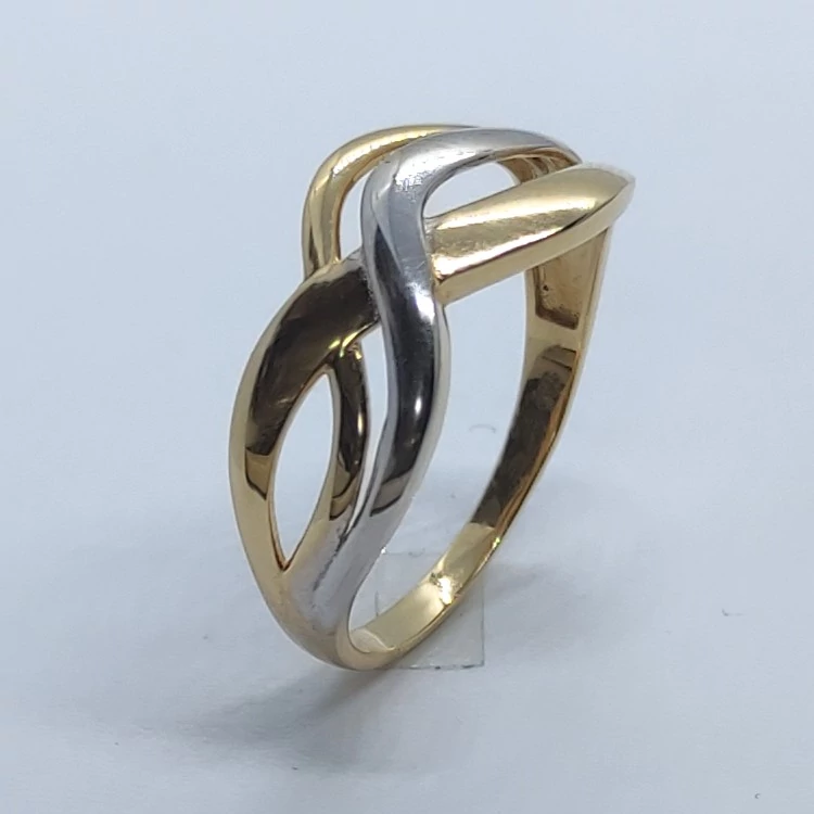 | Végtelen jelre emlékezetető fejrészű, bicolor kő nélküli arany gyűrű | |